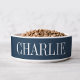 Elevate mealtime with this custom monogrammed dog bowl featuring a clean, minimalist design. Your pet’s name is displayed in a classic serif font for a timeless, modern look that complements any home décor. Available in medium and large sizes, and fully customisable — use the design tools to select your favourite fonts, colours, and background style to create a bowl as unique as your furry friend.