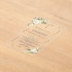 These Premium Acrylic invitations ( two finishes to select from: Crear or Frosted) are perfect for creating lasting impressions. La redacción es totalmente personalizable para satisfacer sus necesidades. Modern Watercolour Floral Gold design on acrylic invitation. It features an elegant faux gold frame, delicate white watercolour flowers and green leaves, on a transparent background. Use Personalise tool to add your info. More ideas in my Spanish Transparent Baptism Collection.