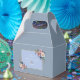 Charm Dusty Blue Pink Flowers Gold Frame Wedding Favour Box