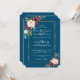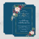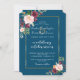Elegant Watercolour Burgundy, Blush Marsala Flowers card design. It features gorgeous burgundy, blush watercolour floral bouquets, modern handwriting "wedding celebration" handwriting script, all on an ocean blue background; on the back floral bouquet on the same background. Use Personalise tool to add your info. For matching items, please, visit my Burgundy Blush Bloom Floral Collection.