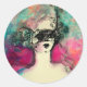 CHARM /Lady With Mask Pink Teal Green Classic Round Sticker