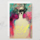 Elegant ,whimsical lady with a sophisticated Venetian feather mask in vibrant pink,green,fuchsia,black,white colours, inspired from Comedy of Art (Commedia dell' Arte ) and Carnival of Venice ,watercolor painting with gold and silver foil .Easy to customise with your own text as a wedding favour ,save-the-date, thank you, bridal showers, birthday parties: sweet 16,quinceanera ,engagement showers, New Year's Day masquerade party, graduations ,anniversaries,or just about any event you wish!