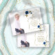legant card design featuring watercolour navy blue flowers and faux gold outlined flowers, gold cross, your photo (easy to be added), on white background. On the back floral heart wreath and name. Use Personalise tool to add your info. For matching items, please, visit my Baptism Photo Collection.