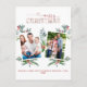 Charm Winter Bouquets Family Photos card design. It features watercolor winter arrangements (pine, cones, berry, eucalyptus leaves), modern and elegant faux red and rose gold "merry" calligraphy, "Christmas" typography and your photos inside a white frames, all on white background. Use Personalise tool to add your photo and info. More ideas in Sparkling Holidays Collection.
