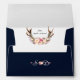 Charm Pink Blush Floral Antlers Navy Blue Wedding Envelope