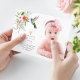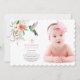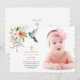 Charming Photo Gold Cross Baptism card design. It features beautiful watercolor white pink Hibiscus, Hummingbirds, eucalyptus leaves, faux shining gold cross, and your baby photo. Use Personalise tool to add your info, easy to replace this photo with yours (boy or girl). For matching items, please, visit my Baptism Photo Collection.