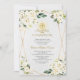 Elegant card design featuring watercolour delicate white flowers and green leaves, a faux gold shining chalice, cross and gold polygonal frame, on a watercolor paper background. On the back white flowers bouquet, gold chalice and initials. Use Personalise tool to add your info, change fonts, font's colours. For matching items, please, visit my Charming Religious Events Collection.