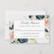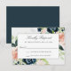 A beautiful wedding RSVP card in a popular colour scheme of pink and midnight blue, this response card coordinates with a matching wedding invitation in several styles. Lovely bouquets of watercolor roses and mixed blooms in pink and midnight blue with trailing greenery and sketched elements surround the centre frame containing your text. The colour scheme works well in weddings during any season of the year. Personalise the text with your required RSVP date.