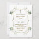 Charming Airy Greenery Gold Cross Dedication Invitation