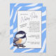 Invite your guests to a helpful, heartwarming party to get ready for baby with this charming chickadee invitation. Featuring a sweet, hand-drawn chickadee and a fun poem about your nesting party activities, this design brings a wave of fluffy joy and freshness. The soft blue stripes create a friendly, inviting vibe to celebrate new beginnings. With its simple, cheerful style, this invitation gets everyone involved in sharing the excitement for baby's arrival.