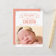 Sweet and full of charm, this modern photo birth announcement is the perfect way to introduce the newest member of your family. Personalise the rear side of the postcard with your return address for easy mailing. Custom colour available upon request.