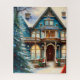 Celebrate the Christmas holiday and enjoy winter with this fun puzzle. The charming design features an oil painting inspired by an old turquoise blue victorian house decorated for the Christmas holiday. the windows are lit up with a warm, welcoming light.