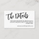 Wedding details insert card for a wedding with black text against a white background. Calligraphy details insert card for your wedding in a black and white design. Simple wedding details insert card with a charming black script.