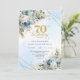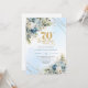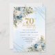 Charming boho blue florals gold frame 70th birthda invitation