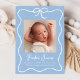 Charming Bow Blue Baby Boy Photo Birth Announcement