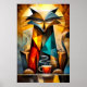 Charming Cat – Cubist Philosopher with Coffee Poster