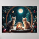 Embrace the festive spirit with this charming art print of a curious kittens surrounded by Christmas decorations under a winter moon.