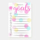 Colourful to do list notepad with handy checkboxes where you can tick off each completed task like a champ! #goals is written in pink against a confetti-strewn background in yellow, pink, and turquoise. Personalise with your name.