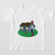 Girls Cute Blue House and Puppy T-shirt. She will love this fun and cheerful t-shirt featuring the whimsical blue cottage design. The graphic showcases an adorable puppy sitting happily in the garden and a little cat looking out the window, surrounded by flowers. This soft tee is perfect for school, playdates, or casual outings. The sweet residential artwork is great for girls who love dogs, cats, and cute cartoon drawings. A unique and charming gift that is sure to bring a smile.