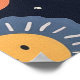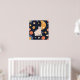 Adorable cute little kitten cat among stars, moon, planets and fish at night. Fantastic design.
