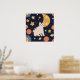 Charming Cute Little Kitten Among Stars and Fish Poster