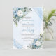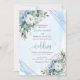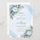 Charming Dusty Blue White Silver Flowers Wedding Invitation