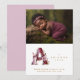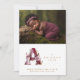 Charming Romantic Floral A Initial in Burgundy & Gold Glitter Effect for Newborn Photo Announcement Card Design.