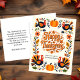 Send a little piece of art straight to the mailbox with this customisable Thanksgiving postcard. The front features a folk art-inspired border of charming turkeys and plump pumpkins, all dancing amongst a cascade of autumn leaves. The centerpiece, "Happy Thanksgiving," is rendered in a warm, retro-style font that feels as cosy as a favourite fall sweater. The back provides a generous space for your personalised message and address, making it a perfect way to share gratitude with clients, family, or friends.