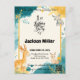 Celebrate your little one's first birthday with this charming invitation featuring an adorable forest animal theme. The design combines playful woodland creatures with a delightful teal and yellow palette, set against a soft watercolor background. Perfect for a nature-inspired or adventure-themed first birthday party, this invitation offers ample space for all the important details, making it an ideal choice for a memorable celebration.
