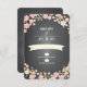 Lovely flowers in soft pink, apricot and blush with berries and blooms in ivory set against a trendy black chalkboard background frames your wedding response card in charming style. Perfect for a spring or summer wedding or when a garden or outdoor theme is part of your special day. Whimsical mix of typography adds fun and flair. Coordinating products in this suite include invitation, reception card, postage, place cards, table number cards, address labels and favour stickers - everything you need for a charming and complete wedding ensemble.