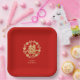 This design features a Chinese Double Happiness symbol combined with a delicate glitter effect and surrounded by an elegant and harmonious floral composition. The sparkling details add a sophisticated and festive touch that highlights the beauty of the flowers without overshadowing them, creating a refined, culturally rich style full of meaning. The square shape of the plates provides visual balance and a modern feel while maintaining the classic essence of Chinese tradition.