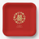 Charming Glitter Effect Floral Chinese Double Happiness Symbol Elegant Paper Plates Design.