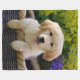 A cute young puppy-eyed Golden Retriever dog in a wicker basket amidst flowers in a garden. This fleece blanket is an enchanting gift idea for doglovers. A cutie young Goldie puppy photographed by Katho Menden. http://www.zazzle.com/kathom_photo