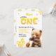 Charming Honey Yellow Cute Bear First Birthday Invitation