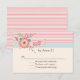 Pretty ivory wedding response card, with a colourful mix of flowers on a pink banner, at the top. A coral pink and white striped pattern and a tiny brown on robin's egg blue polka dot stripe, runs across the top of the card. Personalise the brown text to suit your needs. Lovely mix and match wedding products are available.