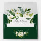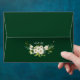 Unique and elegant card design featuring watercolour painted white roses and peonies on white/rich green background. On the back: arrows with a white floral bouquet. Use Customise tool to add your info, change fonts, background colours. For matching items, please, visit my Charm White Floral Dark Blue Collection.