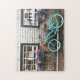 Charming Quaint Cape Cod Blue Bicycle Flowers Chic Jigsaw Puzzle
