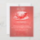 This adorable and chic tea party invitation features a china tea cup and saucer with steaming tea inside. The invitation is red to give it a fun and playful feel. Great for tea parties and birthdays.