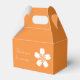 Give your guests, bridesmaids, groomsmen, or anyone else a special treat with these customisable favour boxes featuring a bright orange background with a delicate white cherry blossom on the front and back of the box. Both of these sides also feature some sample text that you can customise for your own wedding or event. Be sure to check out the other products in the Charming Sakura in Orange set to create a truly coordinated look for your event.
