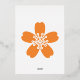 Bring touch of spring charm to your event with this wedding invitation featuring a bright orange border on the right side, decorated with a pattern of delicate cherry blossoms printed in real foil. The left side of the card has plenty of space for all of the details for your special event with some sample text in place that can be customised to fit your needs. A large orange sakura bloom finishes things off on the back to create a sweet final note. This invitation will match with any other Charming Sakura in Orange product so that you can easily make your event as coordinated as you desire.