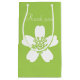 Package gifts for your attendants, groomsmen, family, and anyone else that deserves a little something special in these gift bags, perfect for any spring wedding or event. The front of this peridot green bag is decorated with a delicate white cherry blossom and a simple, "Thank you." The back has a matching sakura flower and sample text that you can customise to fit the details of your special day. Be sure to check out the other products in the Charming Sakura in Peridot set to create a truly coordinated look for your event.