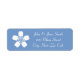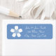 A periwinkle blue return address label is decorated with a white cherry blossom on the left and sample text on the right for customising to make it your own. Use these labels on the outside of your invitations or "Thank You" cards for an elegant touch, especially when combined with the other Charming Sakura in Periwinkle cards, or swap to the standard address sized labels to pre-address the RSVP cards for your guests.