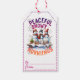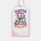 Delightful Christmas gift tags showcase cheerful snowmen assisting in holiday preparations. With a festive atmosphere, a cosy room adorned with a decorated tree sets the scene for gift-giving joy, capturing the spirit of the season perfectly.