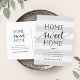 Charming and modern moving announcements let friends and family know about your new home sweet home! Design features a subtle striped background in pale gray and white, with "home sweet home" in soft black script and block typography. Use the template fields to add your custom intro, new address and names. Information repeats on the reverse side with space for recipient addressing.