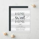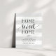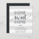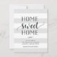 Charming and modern moving announcements let friends and family know about your new home sweet home! Design features a subtle striped background in pale grey and white, with "home sweet home" in soft black script and block typography. Use the template fields to add your custom intro, new address and names.