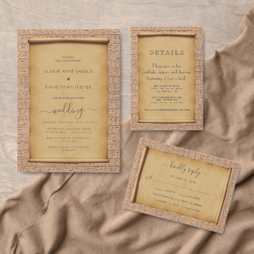 Unique Egyptian Papyrus card design featuring old papyrus on a wall with Egyptian Hieroglyphs, elegant handwriting script and fonts. Use Customise tool to add your info, change the fonts. For matching items, please, visit my Vintage Egyptian Papyrus Collection.