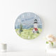 Charming Watercolor Lighthouse Coastal Scene Name Large Clock