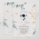 Charming Watercolour Blue Floral Gold Baptism Invitation