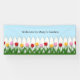 This charming design features a white picket fence and a row of red, pink, and yellow spring tulips that can be personalised for occasions such as birthdays, baby showers, Easter, etc. or to welcome visitors to your home or garden.