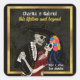 Dia de los Muertos - Wedding Stickers fun, super cute and adorable couple of vintage Charro and Catrina sugar skulls dancing to the tune of this lifetime and beyond. Fun and colourful envelope seals featuring a black textured background, decorated with a fancy gold frame, with customisable newlyweds and wedding date and location
